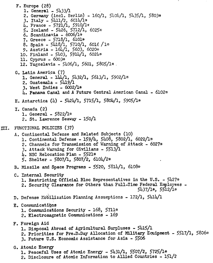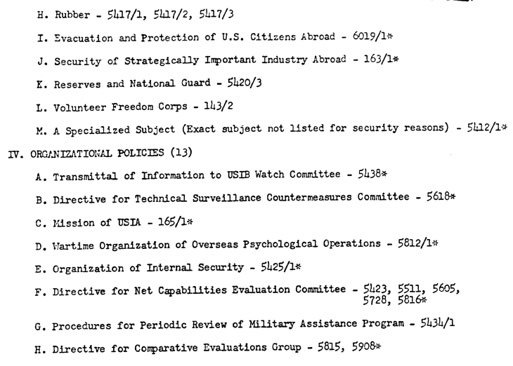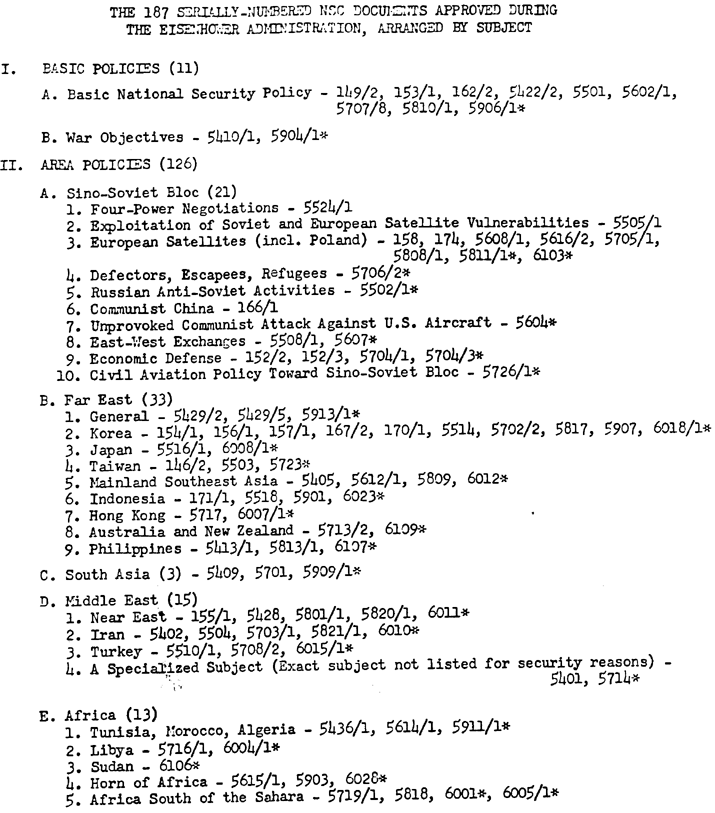 The documents marked with an asterisk were "current as of January 20, 1961." Source: NLK 78-566, JFKL.